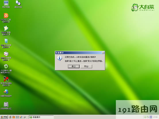 6、恢復(fù)完成,重啟系統(tǒng),開(kāi)始下一個(gè)階段的安裝,一般都是自動(dòng)的了。