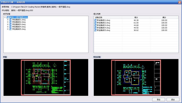 自動評分:一次性進(jìn)行多張圖紙的自動評分。