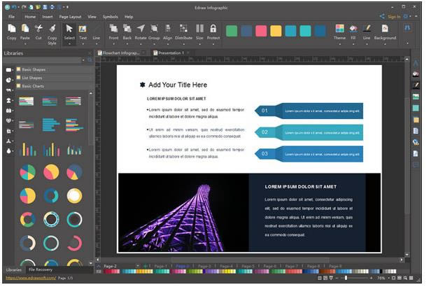 億圖信息圖制作工具是一款功能強大、使用免費的圖文設計軟件,軟件提供了大量的矢量設計圖形以及富含創意的主題模板,通過簡單的拖拽填寫就可以設計完美的信息圖、PPT、海報傳單宣傳冊等。