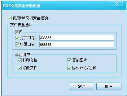 1、可以為生成的PDF文檔設置安全參數,比如打開密碼,禁止打印、拷貝等