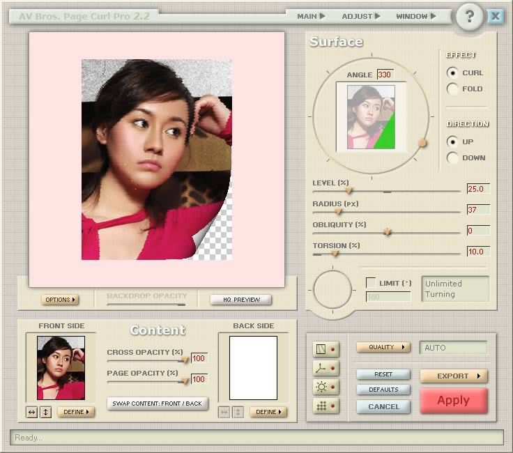 Radius彎曲半徑:調整它可以變換頁面的彎曲程度。