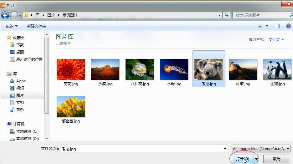 2、這時在彈出的對話框中選擇一張圖片