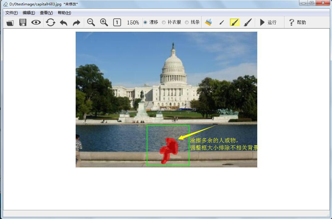 1、漂移法:如果圖片沒有屏幕大小,放大圖片;涂擦修復的區域;調整填充的背景框;點擊“運行”。