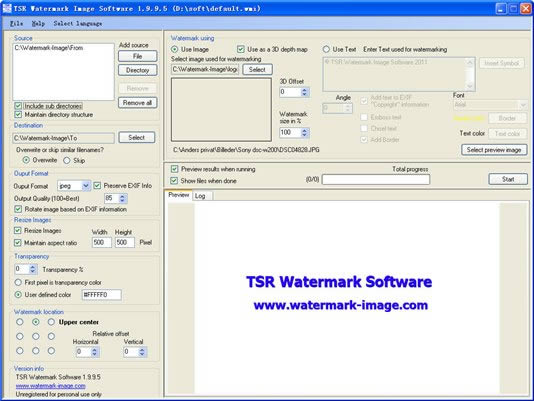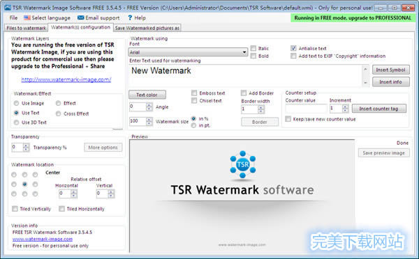 TSR Watermark Image軟件是一款免費的水印圖像軟件 ,可以添加數字水印到您所有的圖像、照片,圖片的透明度你可以自由決定,軟件還可以在加入數字水印前調整圖像。