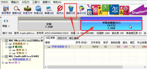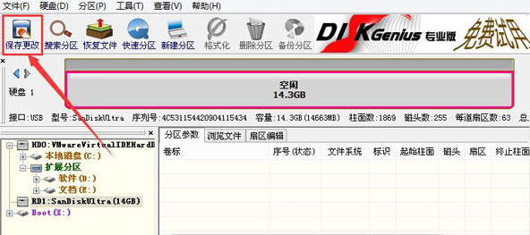 ![]() 2、在打開(kāi)的diskgenius分區(qū)工具中,選中可移動(dòng)磁盤部分的分區(qū),點(diǎn)擊刪除分區(qū)按鈕,如圖: 3、刪除分區(qū)后點(diǎn)擊保存更改按鈕,如圖: 4、會(huì)彈出確認(rèn)是否對(duì)分區(qū)表的更改窗口,點(diǎn)擊是繼續(xù)即可。然后選中整塊u盤,點(diǎn)擊新建分區(qū)按鈕,如圖: 5、在新建新分區(qū)窗口中參照并選擇好設(shè)置選項(xiàng),點(diǎn)擊確定按鈕,如圖: 6、接著點(diǎn)擊保存更改按鈕,如圖: 7、在彈出的確認(rèn)窗口中點(diǎn)擊是,即可讓分區(qū)表生效。然后會(huì)提醒新建分區(qū)要格式化的窗口,點(diǎn)擊是進(jìn)行格式化,直到格式化結(jié)束退出diskgenius分區(qū)工具并重啟電腦即可。如圖: 以上全部就是u盤未分配分區(qū)如何合并的操作方法,u盤未分配就不能正常使用,很多小伙伴遇到這種情況會(huì)覺(jué)得自己購(gòu)買到假u盤,其實(shí)不是,只需要跟著快啟動(dòng)小編的操作就能將u盤未分配分區(qū)合并在一起,就能讓大家正常使用哦,希望能夠幫到大家。 U盤最大的優(yōu)點(diǎn)就是:小巧便于攜帶、存儲(chǔ)容量大、價(jià)格便宜、性能可靠。 |