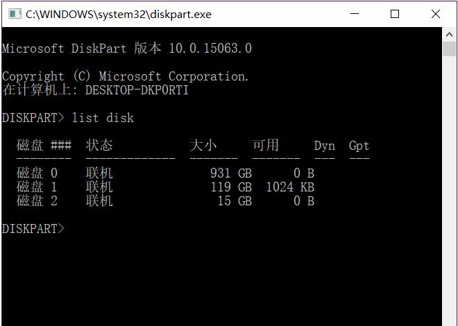 ![]() 注:Win7用戶要輸入cmd,然后在命令提示符下輸入diskpart再進入。 輸入命令“list disk(注意空格)”回車查看當前電腦掛載的硬盤,這其中也包含U盤。而且,這個時候顯示的容量就是自己U盤的真實容量,無論現在格式化后的U盤究竟是多少。