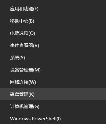 ![]() 關掉diskpart命令窗口,右鍵單擊左下的Win鍵并選中“磁盤管理”。
