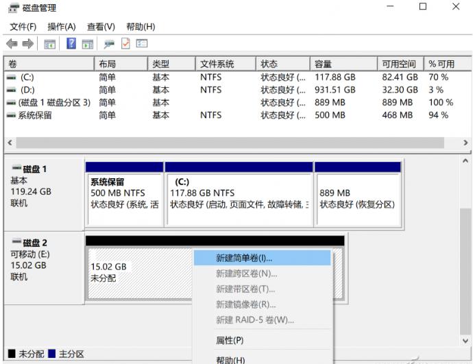 ![]() 在磁盤管理中,找到自己的U盤,這時候應該變成“未分配”模式,右鍵單擊跟著向導重新建立U盤格式就可以了。