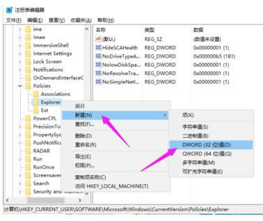 Windows 10是美國微軟公司研發(fā)的跨平臺及設(shè)備應(yīng)用的操作系統(tǒng)。是微軟發(fā)布的最后一個獨立Windows版本。Windows 10共有7個發(fā)行版本,分別面向不同用戶和設(shè)備。截止至2018年3月7日,Windows 10正式版已更新至秋季創(chuàng)意者10.0.16299.309版本,預覽版已更新至春季創(chuàng)意者10.0.17120版本 對于辦公室的白領(lǐng)來說,電腦是一件不可缺少的工具。基本上每天都要面對幾個小時的電腦,可以說跟電腦打交道是白領(lǐng)工作的一部分,電腦復制粘貼快捷鍵不能使用的情況是很常見的現(xiàn)象,有用戶遇到復制粘貼不能用的情況,下面,小編給大家介紹復制粘貼不能用的處理方法。 在日常辦公中,復制粘貼快捷鍵是使用頻率最高的,給辦公帶來了許多方便。但最近有用戶遇到了復制粘貼快捷鍵失靈的問題,經(jīng)過一番摸索終于解決了該問題,某個應(yīng)用導致復制粘貼等一些功能異常,卸載后解決。下面,小編給大家講解復制粘貼不能用的解決方法。 復制粘貼不能用怎么解決 快捷鍵win+r快速打開運行對話框。 電腦復制粘貼載圖1 然后輸入regedit命令,確定,就進入了注冊表編輯器窗口。 粘貼載圖2 接著依次打開[HKEY_CURRENT_USER/Software/Microsoft/Windows/CurrentVersion/Policies/Explorer] 粘貼載圖3 然后選定Explorer這項,右鍵->新建->DWORD值,在右窗口新建一個項。 復制載圖4 新建后,默認名會為“新建 #1”,需要將這個名字改為“NoViewContextMenu”。 電腦復制粘貼載圖5 改完名后,雙擊“NoViewContextMenu”,打開一個“編輯DWORD值”窗口,在數(shù)據(jù)數(shù)值下,將值改為“1”,然后按確定,就修改完成了,去試一試是否可以復制粘貼了。 電腦復制粘貼載圖6 以上就是復制粘貼不能用的處理方法。 新技術(shù)融合:在易用性、安全性等方面進行了深入的改進與優(yōu)化。針對云服務(wù)、智能移動設(shè)備、自然人機交互等新技術(shù)進行融合。Windows 10所新增的Windows Hello功能將帶來一系列對于生物識別技術(shù)的支持。除了常見的指紋掃描之外,系統(tǒng)還能通過面部或虹膜掃描來讓你進行登入。當然,你需要使用新的3D紅外攝像頭來獲取到這些新功能。 |