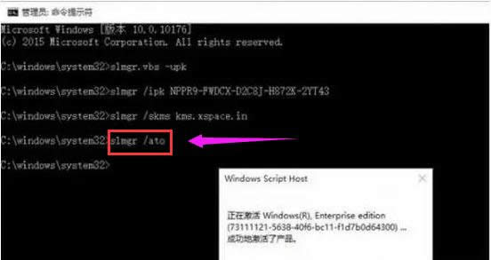 激活載圖4 輸入以下命令:Slmgr /ato,按回車鍵后將彈出窗口提示:“成功的激活了產(chǎn)品”。至此,Win10正式企業(yè)版系統(tǒng)激活成功。