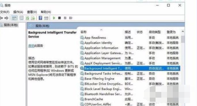 2、在服務頁面中找到名為Background Intelligent Transfer Service的服務,我們可以在英文輸入法狀態(tài)下按下 B 即可快速找到該服務;