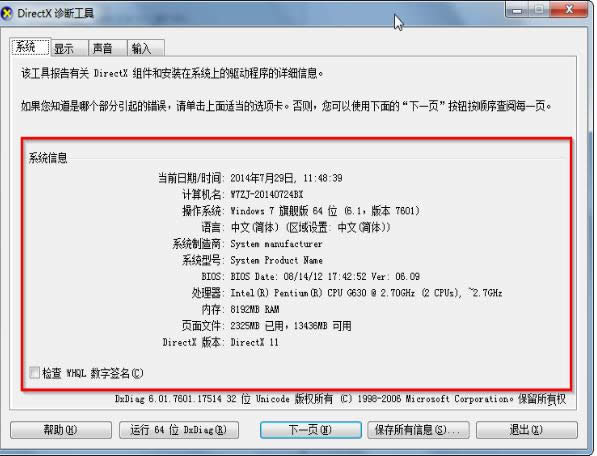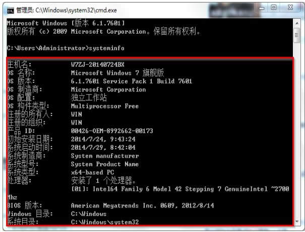 Windows 7,中文名稱視窗7,是由微軟公司(Microsoft)開發(fā)的操作系統(tǒng),內(nèi)核版本號為Windows NT 6.1。Windows 7可供家庭及商業(yè)工作環(huán)境:筆記本電腦 、平板電腦 、多媒體中心等使用。和同為NT6成員的Windows Vista一脈相承,Windows 7繼承了包括Aero風(fēng)格等多項功能,并且在此基礎(chǔ)上增添了些許功能。 想必對于喜歡組裝電腦的朋友而言對電腦配置都不會感到而陌生吧,反之對于新手朋友來說就困難了,那么該如何看電腦配置呢?查看電腦配置方法有哪些呢?下面小編將會一一的給大家介紹查看電腦配置的操作步驟。 相信電腦的配置是決定一臺電腦的性能,相信這個大家都是知道的。所以有許多人的會經(jīng)常拿自己的電腦配置與他人的進行攀比,但是在這個前提條件下就是我們要得知道自己的電腦配置和別人的配置,這樣才能進行相比。那么該如何進行查看電腦的配置呢?別著急小編這就來將查看方法分享給你們。 1.點擊“開始”→在開始界面中的搜索框中輸入“cmd”→并按下回車鍵。如圖1所示: 如何查看電腦配置圖解詳情-1 2.在出現(xiàn)的cmd命令提示符界面中輸入systeminfo→并按下回車。如圖2所示: 如何查看電腦配置圖解詳情-2 3.接著你所需要的電腦配置信息就出現(xiàn)在界面里了。如圖3所示: 配置圖解詳情-3 方法二:win7系統(tǒng)DirectX診斷工具 1.同時按下鍵盤上的windows鍵和字母鍵R→在出現(xiàn)的運行窗口中→輸入“dxdiag”→點擊“確定”。如圖4所示: 電腦配置怎么看圖解詳情-4 2.接著會出現(xiàn)DirectX診斷工具窗口→選擇“否”即可。如圖5所示: 電腦配置怎么看圖解詳情-5 3.在DirectX診斷工具的“系統(tǒng)”和“顯示”欄目可以看到我們所要的電腦配置情況,如圖6-7所示: 配置圖解詳情-6 配置圖解詳情-7 方法三:win7系統(tǒng)多界面組合查看電腦配置 1.選中桌面上的“計算機”→鼠標(biāo)右鍵→屬性,查看電腦的CPU和內(nèi)存,如圖8所示: 電腦圖解詳情-8 2.查看完畢后,選擇左邊的“設(shè)備管理器”,如上圖8所示。 3.選擇設(shè)備管理器界面中的“處理器”和“顯示適配器”可以看到更詳細的CPU信息和顯卡信息,如圖9所示: 如何查看電腦配置圖解詳情-9 4.選中計算機→鼠標(biāo)右鍵→在右鍵菜單欄選擇“管理”→在打開的計算機管理界面左側(cè)樹型圖中選擇“磁盤管理”,在界面右邊出現(xiàn)的各個磁盤進行點選,就可以查看各個磁盤容量大小及分配情況,如圖10所示: 配置圖解詳情-10 Windows 7簡化了許多設(shè)計,如快速最大化,窗口半屏顯示,跳轉(zhuǎn)列表(Jump List),系統(tǒng)故障快速修復(fù)等。Windows 7將會讓搜索和使用信息更加簡單,包括本地、網(wǎng)絡(luò)和互聯(lián)網(wǎng)搜索功能,直觀的用戶體驗將更加高級,還會整合自動化應(yīng)用程序提交和交叉程序數(shù)據(jù)透明性。 |