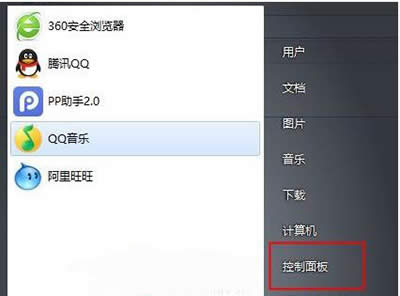 1、點(diǎn)擊開(kāi)始菜單,點(diǎn)擊“控制面板”;