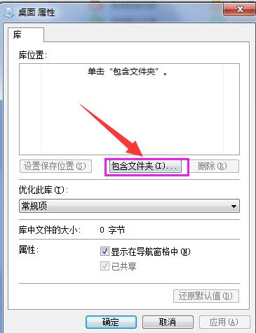 庫電腦圖解5 選擇桌面,點擊包括文件夾按鈕。
