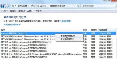 Windows 7,中文名稱視窗7,是由微軟公司(Microsoft)開發的操作系統,內核版本號為Windows NT 6.1。Windows 7可供家庭及商業工作環境:筆記本電腦 、平板電腦 、多媒體中心等使用。和同為NT6成員的Windows Vista一脈相承,Windows 7繼承了包括Aero風格等多項功能,并且在此基礎上增添了些許功能。 最近有網友跟小編留言說w7系統更新失敗。不能自動修補系統漏洞。今天小編用一分鐘教會你如何輕松解決w7系統更新失敗問題。如果有一樣w7系統更新失敗的網友們,就跟著小編的腳步一起學習吧。 1、根據提示安裝更新,安裝完畢后如果有失敗的,那就查看失望的記錄,查看任何一個都行, 2、點擊查看詳細信息之后,找到錯誤的詳細信息代碼,然后查看其他的失敗信息代碼,每個代碼都是一樣的,這樣推測可能是更新程序本身出現問題了 3、去微軟的官網找到幫助頁面,找到修補程序,一定要和自己的系統相對應,有的是32位的,有的是64位的 4、找到相對應的修補程序后,下載然后安裝,這個過程有點慢,當見到進度條沒有反應的時候千萬不要點擊“取消”按鈕 5、修補程序安裝完畢之后會顯示“安裝完成”,然后點擊關閉,再回到系統更新從新安裝更新 以上就是w7系統更新失敗的教程了。看了小編精心準備的教程是不是就能成功的更新系統了呢。更多電腦系統的常見問題,請關注我們的官網。 Windows 7簡化了許多設計,如快速最大化,窗口半屏顯示,跳轉列表(Jump List),系統故障快速修復等。Windows 7將會讓搜索和使用信息更加簡單,包括本地、網絡和互聯網搜索功能,直觀的用戶體驗將更加高級,還會整合自動化應用程序提交和交叉程序數據透明性。 |