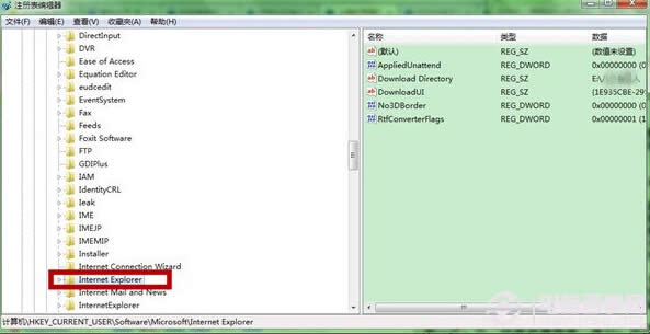 具體方法: 第二步、在“注冊表編輯器”窗口,依次找到[HKEY_CURRENT_USER\Software\Microsoft\Internet Explorer]。