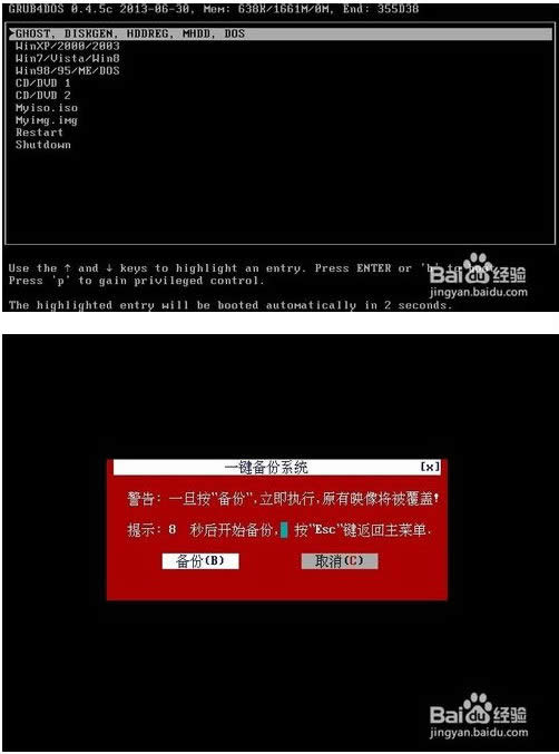 重啟后系統會自動跳轉,并且自動備份你的系統文件,等待備份完成。