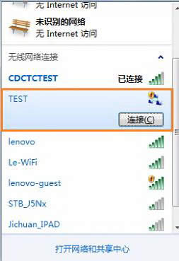 6、其他電腦在無(wú)線網(wǎng)絡(luò)列表中選擇對(duì)應(yīng)的SSID名稱后選擇“連接”就可成功訪問該無(wú)線局域網(wǎng)了。