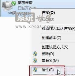 二:之后我們將找到寬帶連接,然后我在剛才設立的連接圖標上,右擊鼠標,選擇創建快捷方式,之后會提示你是否把快捷方式放在桌面選“是”,再次右擊鼠標選擇屬性,如下圖: