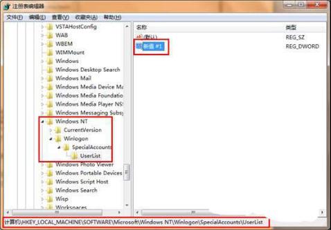 Windows 7,中文名稱視窗7,是由微軟公司(Microsoft)開發的操作系統,內核版本號為Windows NT 6.1。Windows 7可供家庭及商業工作環境:筆記本電腦 、平板電腦 、多媒體中心等使用。Windows 7可供選擇的版本有:入門版(Starter)、家庭普通版(Home Basic)、家庭高級版(Home Premium)、專業版(Professional)、企業版(Enterprise)(非零售)、旗艦版(Ultimate)。 為了方便使用,都會給自己的創建一個新的賬戶來登錄使用,但用戶發現登錄系統的時候默認的不是新創建的賬戶,仍舊是administrator賬戶,現筆者介紹win7系統賬戶設置讓新賬戶覆蓋admin賬戶的技巧。1、依次點擊“開始——運行”,在“運行”窗口中輸入“regedit”命令后按回車。 2、在打開的“注冊表編輯器”中,展開以下注冊項“HKEY_LOCAL_MACHING\SOFTWARE\Microsoft\Windows NT\CurrentVersion\”。 ![]() 3、在“Winlogon\SpecialAccounts\UserList”注冊項右側空白處,右鍵新建一個“DWORD32位的值”。 ![]() 4、雙擊這個新值,將數值數據設定成“0”,點擊“確定”保存設置后,退出注冊表。 通過以上設置后,重啟系統,這樣Windows7旗艦版系統中新建賬戶直接覆蓋administrator賬戶了。 windows 7 的設計主要圍繞五個重點——針對筆記本電腦的特有設計;基于應用服務的設計;用戶的個性化;視聽娛樂的優化;用戶易用性的新引擎。 跳躍列表,系統故障快速修復等,這些新功能令Windows 7成為最易用的Windows。 |