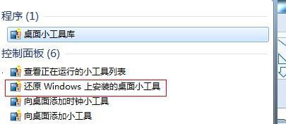 Windows 7,中文名稱視窗7,是由微軟公司(Microsoft)開發的操作系統,內核版本號為Windows NT 6.1。Windows 7可供家庭及商業工作環境:筆記本電腦 、平板電腦 、多媒體中心等使用。Windows 7可供選擇的版本有:入門版(Starter)、家庭普通版(Home Basic)、家庭高級版(Home Premium)、專業版(Professional)、企業版(Enterprise)(非零售)、旗艦版(Ultimate)。 使用過Win7旗艦版系統的用戶,都會發現桌面右鍵菜單中有小工具的選項,但有用戶由于誤操作將這些小工具誤刪了,怎樣恢復呢?下面小編給大家介紹win7系統桌面小工具誤刪的恢復攻略,具體如下:1、點擊“開始——搜索”,在搜索框中輸入“小工具”,按回車鍵進行搜索。 ![]() 2、在顯示的相關結果中選定“還原Windows上安裝的桌面小工具”的選項,按回車確定后就能在復原小工具的功能了。 ![]() 以上就是關于win7系統桌面小工具誤刪的恢復攻略介紹了,如果你在使用WIn7系統過程中,也遇到了此問題時,請嘗試以上方法快速復原吧。 windows 7 的設計主要圍繞五個重點——針對筆記本電腦的特有設計;基于應用服務的設計;用戶的個性化;視聽娛樂的優化;用戶易用性的新引擎。 跳躍列表,系統故障快速修復等,這些新功能令Windows 7成為最易用的Windows。 |