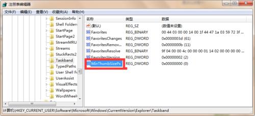 2、在打開的注冊表中,按照下面的順序找到相應(yīng)的文件夾,點(diǎn)擊前面的三角符號展開HKEY_CURRENT_USER\Software\Microsoft\Windows\CurrentVersion\Explorer\Taskband