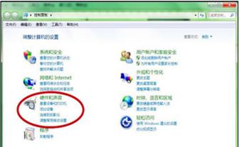 2、在“控制面板”界面中,選擇“硬件與聲音”;