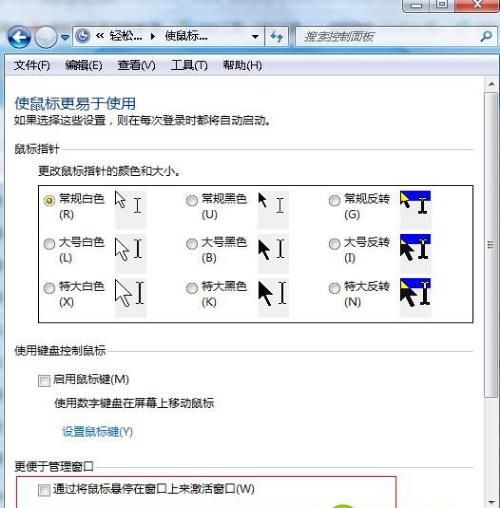 1、打開“控制面板”,在控制面板中點(diǎn)擊“輕松訪問”。在“輕松訪問中心”下選擇“更改鼠標(biāo)的工作方式”,在打開的“使鼠標(biāo)更易于使用”窗口里,勾選上“通過鼠標(biāo)懸停在窗口上來激活窗口”,應(yīng)用確定后,退出就搞定了。