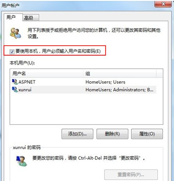 2.打開用戶賬戶對(duì)話框,將“要使用本機(jī),用戶必須輸入用戶名和密碼”前面的勾去掉,最后點(diǎn)擊“確定”保存設(shè)置.