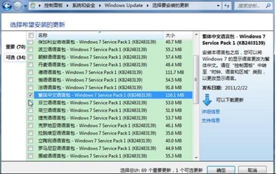 2、在彈出的窗口左下方有Windows Update選項,運行Windows Update功能,待Win7系統自動檢測來自微軟的所有更新補丁,點擊“可選更新”,在windows7 language packs中選擇自己需要的語言包,比如繁體中文或英文,然后進行下載補丁,并按提示安裝補丁。在這里注意無需全部下載,根據自己需求下載,否則浪費磁盤空間,另外其它系統提示的補丁,也需要根據你自己的需要和實際情況來選擇。