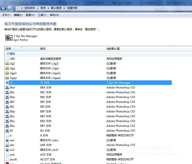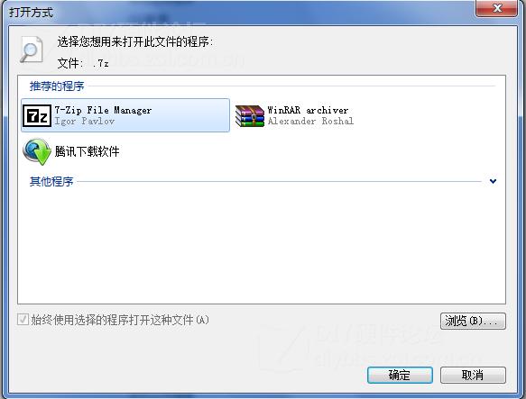 Windows 7,中文名稱視窗7,是由微軟公司(Microsoft)開發的操作系統,內核版本號為Windows NT 6.1。Windows 7可供家庭及商業工作環境:筆記本電腦 、平板電腦 、多媒體中心等使用。Windows 7可供選擇的版本有:入門版(Starter)、家庭普通版(Home Basic)、家庭高級版(Home Premium)、專業版(Professional)、企業版(Enterprise)(非零售)、旗艦版(Ultimate)。 在電腦中有時經常會使用到壓縮包文件、WPS文檔或圖片等,當用戶需要打開壓縮包文件時用的是Winrar壓縮軟件,要打開7Z或ISO等文件時,用的是7-Zip,這時候就需要對文件的關聯程序進行設置默認的打開方式,通過修改系統的關聯設置,來順利地打開匹配的關聯方式,系統之家windows7系統文件默認打開方式的設置方法如下:方法一: 在需要更改文件關聯的程序上右鍵,選擇打開方式——默認的打開方式即可。此方法是最簡單的操作方法,但是每次都需選擇默認的打開方式。 方法一: 1、依次點擊“開始——控制面板——查看方式改為類別,然后點擊程序” 2、點擊打開默認程序 3、點擊打開“將文件類型或協議與程序關聯” ![]() 4、在文件關聯設置里,雙擊你要設置的擴展名。 ![]() 5、在打開方式里選擇打開的程序,比如7-Zip,如果沒有可通過下面的瀏覽來查找,然后確定即可 ![]() 通過以上對ylmf系統中文件默認打開方式的設置方法的介紹后,有需要的用戶請按照以上方法設置吧。 windows 7 的設計主要圍繞五個重點——針對筆記本電腦的特有設計;基于應用服務的設計;用戶的個性化;視聽娛樂的優化;用戶易用性的新引擎。 跳躍列表,系統故障快速修復等,這些新功能令Windows 7成為最易用的Windows。 |