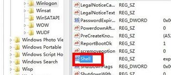 4、在打開的注冊表編輯器窗口中,在左側的菜單中依次展開以下注冊項HKEY_LOCAL_MACHINE\SOFTWARE\Microsoft\Windows NT\CurrentVersion\Winlogon,在右側的窗口找到并雙擊shell文件。