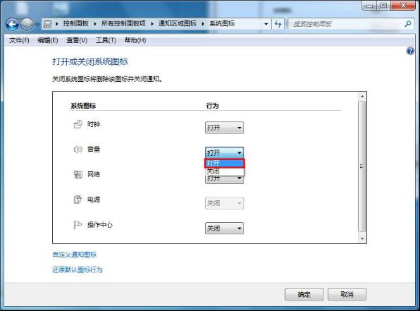 Windows 7,中文名稱視窗7,是由微軟公司(Microsoft)開發的操作系統,內核版本號為Windows NT 6.1。Windows 7可供家庭及商業工作環境:筆記本電腦 、平板電腦 、多媒體中心等使用。Windows 7可供選擇的版本有:入門版(Starter)、家庭普通版(Home Basic)、家庭高級版(Home Premium)、專業版(Professional)、企業版(Enterprise)(非零售)、旗艦版(Ultimate)。 一些用戶的Windows7旗艦版系統中任務欄右下角沒有音量的圖標,導致無法正常調節系統聲音,怎么辦?其實這種情況主要是由于用戶關閉了系統音量圖標顯示的問題,現小編給大家分享系統之家win7旗艦版yn系統電腦音量圖標不見了的開啟方法,具體操作如下:1、在任務欄上空白處右鍵,選擇屬性。 2、在彈出的“任務欄和開始菜單屬性”窗口中,在通知區域中選擇“自定義”。 ![]() 3、在彈出的菜單中,找到“打開或關閉系統圖標”,然后打開。 4、在出現的界面中,找到音量,將后面的行為設置成“打開”,然后點擊確定, ![]() 以上就是關于系統之家win7旗艦版yn系統電腦音量圖標不見了的開啟方法介紹了,如果你也在Win7系統遇到任務欄沒有音量圖標的話,只要按照以上的打開方法進行設置,就可正常都使用了。 windows 7 的設計主要圍繞五個重點——針對筆記本電腦的特有設計;基于應用服務的設計;用戶的個性化;視聽娛樂的優化;用戶易用性的新引擎。 跳躍列表,系統故障快速修復等,這些新功能令Windows 7成為最易用的Windows。 |