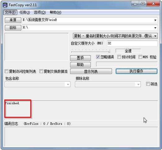 Windows 7,中文名稱視窗7,是由微軟公司(Microsoft)開發的操作系統,內核版本號為Windows NT 6.1。Windows 7可供家庭及商業工作環境:筆記本電腦 、平板電腦 、多媒體中心等使用。Windows 7可供選擇的版本有:入門版(Starter)、家庭普通版(Home Basic)、家庭高級版(Home Premium)、專業版(Professional)、企業版(Enterprise)(非零售)、旗艦版(Ultimate)。 使用Windows系統過程中,有時需要重裝系統,比如想換成非常好用的Win7旗艦版系統時,在重裝系統前是需要對系統的重要文件進行備份,備份系統的方法有各種各樣,使用軟件進行備份也是比較常用的方法,但絕大部分軟件在備份大容量數據時都需浪費很長時間,現小編就此問題,給大家分享妙用FastCopy快速備份大地Win7旗艦版系統大容量數據。1、下載并解壓FastCopy工具,打開解壓好的文件夾,雙擊打開名為“FastCopy.exe”的應用程序。 2、在出現的FastCopy ver2.11窗口中,點選“來源”,在出現的“瀏覽文件夾”中選擇要進行拷貝的文件夾,比如小編這里演示的是Win8鏡像文件。 ![]() 3、重新返回到FastCopy ver2.11窗口中,點選“目標”→在出現的“瀏覽文件夾”中選擇數據要被存放的地方,比如小編這里演示的是“口袋專業_PE (H:)”,然后點擊“確定”。 ![]() 4、選擇“執行操作 ”,其他全部默認即可。 ![]() 5、當出現“Finished.”的文字,則說明大容量數據備份已經完成了。 ![]() 以上就是關于妙用FastCopy快速備份大地Win7旗艦版系統大容量數據介紹了,使用Finished工具可以精準極速的備份需要的資料,大大的提高備份時間,有需要備份大容量數據的用戶請試試吧。 windows 7 的設計主要圍繞五個重點——針對筆記本電腦的特有設計;基于應用服務的設計;用戶的個性化;視聽娛樂的優化;用戶易用性的新引擎。 跳躍列表,系統故障快速修復等,這些新功能令Windows 7成為最易用的Windows。 |
