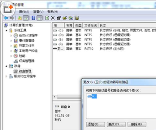 3、找到并右鍵u盤的盤符,選擇“更改驅(qū)動(dòng)器名和路徑”,在彈出的窗口中點(diǎn)擊“更改”按鈕。