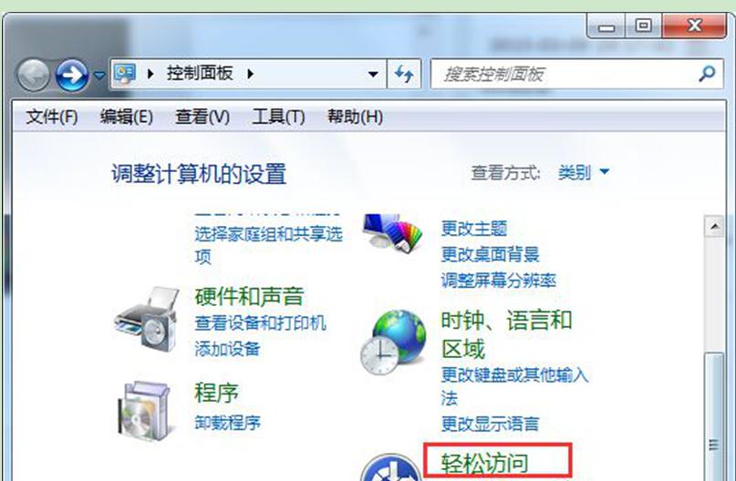 1、點(diǎn)擊“開始——控制面板——輕松訪問”選項(xiàng)。