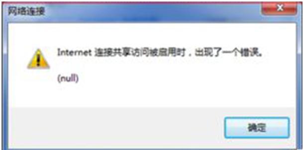 Windows 7,中文名稱視窗7,是由微軟公司(Microsoft)開發(fā)的操作系統(tǒng),內(nèi)核版本號為Windows NT 6.1。Windows 7可供家庭及商業(yè)工作環(huán)境:筆記本電腦 、平板電腦 、多媒體中心等使用。Windows 7可供選擇的版本有:入門版(Starter)、家庭普通版(Home Basic)、家庭高級版(Home Premium)、專業(yè)版(Professional)、企業(yè)版(Enterprise)(非零售)、旗艦版(Ultimate)。 在使用電腦過程中,有時候難免會遇到無線網(wǎng)絡(luò)無法共享的問題,比如今天小編遇到了這樣一個問題,在使用Win7系統(tǒng)連接internet時,出現(xiàn)了“internet連接共享被啟用時,出現(xiàn)了一個錯誤(null)”,怎么辦呢?下面小編介紹深度技術(shù)Win7系統(tǒng)internet連接共享啟用null錯誤的解決方案,具體如下: