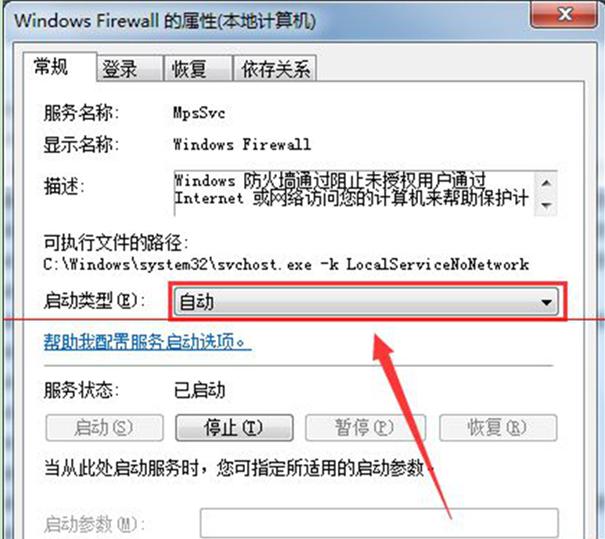 4、在屬性窗口中,點擊“啟動”,并且將啟動設(shè)置為自動啟動。