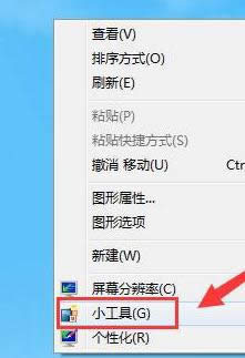 1、在桌面的空白處右鍵,選擇“小工具”。