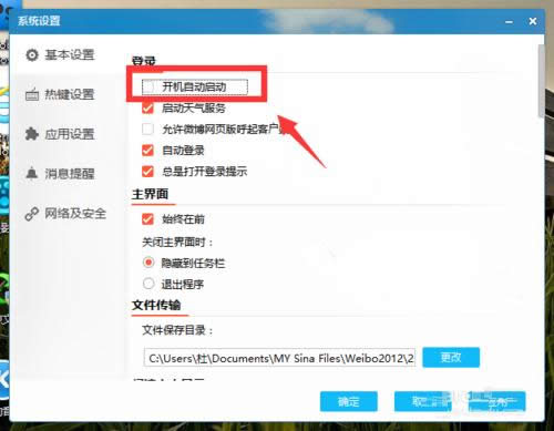 Windows 7,中文名稱視窗7,是由微軟公司(Microsoft)開發的操作系統,內核版本號為Windows NT 6.1。Windows 7可供家庭及商業工作環境:筆記本電腦 、平板電腦 、多媒體中心等使用。Windows 7可供選擇的版本有:入門版(Starter)、家庭普通版(Home Basic)、家庭高級版(Home Premium)、專業版(Professional)、企業版(Enterprise)(非零售)、旗艦版(Ultimate)。 很多用戶都有玩過電腦版的新浪微博,客戶端可關注好友或與朋友互動等,但有用戶發現安裝新浪微博后,電腦開機就會自動啟動新浪微博,影響到電腦的開機速度,其實可通過新浪微博設置來關閉自動啟動,現筆者介紹新浪微博隨電腦公司Win7系統開機自動啟動的關閉方法,具體操作如下:1、點擊打開“新浪微博” 2、在打開的新浪微博窗口中,點擊“新浪微博”界面下面的設置按鈕,打開“系統設置”。 ![]() 3、在“系統設置”里面,點擊左側窗口的“基本設置”按鈕。 4、在“基本設置”里面,將“開機自動啟動”設置前面的勾去掉。 ![]() 以上就是關于新浪微博隨電腦公司Win7系統開機自動啟動的關閉方法介紹了,無需依賴第三方軟件也可輕松的對新浪微博開機自動啟動進行關閉,如果用戶不想讓新浪微博自動啟動的話,可參照以上的方法來關閉。 windows 7 的設計主要圍繞五個重點——針對筆記本電腦的特有設計;基于應用服務的設計;用戶的個性化;視聽娛樂的優化;用戶易用性的新引擎。 跳躍列表,系統故障快速修復等,這些新功能令Windows 7成為最易用的Windows。 |