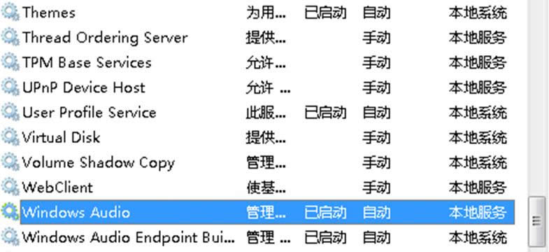 Windows 7,中文名稱視窗7,是由微軟公司(Microsoft)開發的操作系統,內核版本號為Windows NT 6.1。Windows 7可供家庭及商業工作環境:筆記本電腦 、平板電腦 、多媒體中心等使用。Windows 7可供選擇的版本有:入門版(Starter)、家庭普通版(Home Basic)、家庭高級版(Home Premium)、專業版(Professional)、企業版(Enterprise)(非零售)、旗艦版(Ultimate)。 最近有一朋友在使用Win7系統電腦后,在電腦關機前電腦聲音還是正常的,但再開機的時就沒有聲音了,而且任務欄右下角的喇叭上面也顯示著紅叉,把鼠標放在喇叭圖標上顯示“The Audio Service is not running”,怎么辦呢?針對這個問題,下面小編整理了大地Win7喇叭上顯示The Audio Service is not running的解決措施,現分享給大家,具體如下:1、按“Win+R”,打開“運行”窗口輸入“services.msc”命令,打開服務窗口。 2、在打開的服務窗口,找到并右鍵“Windows Audio”。 ![]() 3、在打開的設置窗口中,將“啟動類型” 設為“自動”都可以。 以上方法設置后,Win7電腦無聲,喇叭圖標上顯示TheAudio Service is not running的問題就解決了。 windows 7 的設計主要圍繞五個重點——針對筆記本電腦的特有設計;基于應用服務的設計;用戶的個性化;視聽娛樂的優化;用戶易用性的新引擎。 跳躍列表,系統故障快速修復等,這些新功能令Windows 7成為最易用的Windows。 |