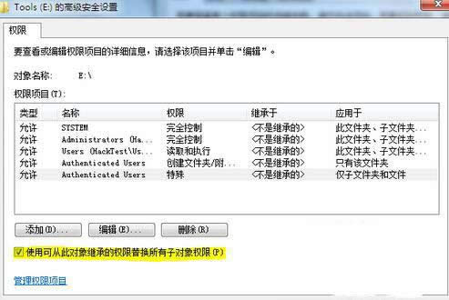 Windows 7,中文名稱視窗7,是由微軟公司(Microsoft)開發的操作系統,內核版本號為Windows NT 6.1。Windows 7可供家庭及商業工作環境:筆記本電腦 、平板電腦 、多媒體中心等使用。Windows 7可供選擇的版本有:入門版(Starter)、家庭普通版(Home Basic)、家庭高級版(Home Premium)、專業版(Professional)、企業版(Enterprise)(非零售)、旗艦版(Ultimate)。 在使用新蘿卜家園Win7系統過程中,有時會遇到分區無法使用,點擊提示拒絕訪問的問題;或是刪除文件又提示您需要管理員權限才能刪除此文件夾的問題。下面小編就給大家分享添加管理員權限到新蘿卜家園Win7系統的方法,具體如下:一、解決磁盤提示拒絕訪問:給問題磁盤添加user組的默認權限。 ![]() 二、添加authenticated users權限 1、點擊”安全標簽——高級——更改權限——添加authenticated users的權限。 2、添加用戶的創建文件夾和附加數據的權限。 3、勾選“刪除子文件夾和文件”。 4、勾選可從此對象繼承的權限替換所有子對象權限。 ![]() 通過如上設置后,但可恢復磁盤分區的默認權限,需要管理員權限才能刪除文件夾的問題就解決了。 windows 7 的設計主要圍繞五個重點——針對筆記本電腦的特有設計;基于應用服務的設計;用戶的個性化;視聽娛樂的優化;用戶易用性的新引擎。 跳躍列表,系統故障快速修復等,這些新功能令Windows 7成為最易用的Windows。 |