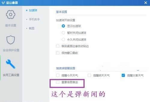 Windows 7,中文名稱視窗7,是由微軟公司(Microsoft)開發的操作系統,內核版本號為Windows NT 6.1。Windows 7可供家庭及商業工作環境:筆記本電腦 、平板電腦 、多媒體中心等使用。Windows 7可供選擇的版本有:入門版(Starter)、家庭普通版(Home Basic)、家庭高級版(Home Premium)、專業版(Professional)、企業版(Enterprise)(非零售)、旗艦版(Ultimate)。 在Win7筆記本任務欄總彈出金山毒霸廣告的解決辦法分享給大家。一些用戶在Windows7系統電腦上使用金山毒霸保護系統的安全,但卻發現任務欄右下角彈出廣告的問題,其實這些廣告可通過金山毒霸的自定義設置來關閉,具體步驟如下:1、毒霸右下角彈窗廣告,由于大部分的右下角彈窗廣告都是相關產品的推薦,比如垃圾清理、隱私清理、手機助手等,打開金山毒霸,去掉“接收產品成本推薦提醒”前面的勾選。 ![]() 2、這個對于玩游戲的用戶來說,每次打開游戲之后,金山毒霸都會在屏幕右下角提示用戶已經開啟游戲保護模式,退出游戲之后,又會彈窗提示釋放資源,如果不玩游戲的話,當將“玩游戲時自動進入游戲保護模式”前面的勾去掉。 ![]() 3、對于重要信息推送,比如新聞資訊也會在右下角彈出來的,其實這個也是廣告,用戶可根據自己的需要來決定是否關閉掉。 ![]() 彈窗廣告給用戶帶來了很大的困擾,如果用戶不想讓金山毒霸在桌面右下角彈出各種廣告的話,請參照以上方法吧。 windows 7 的設計主要圍繞五個重點——針對筆記本電腦的特有設計;基于應用服務的設計;用戶的個性化;視聽娛樂的優化;用戶易用性的新引擎。 跳躍列表,系統故障快速修復等,這些新功能令Windows 7成為最易用的Windows。 |
