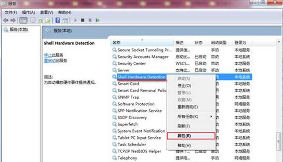 Windows 7,中文名稱視窗7,是由微軟公司(Microsoft)開發的操作系統,內核版本號為Windows NT 6.1。Windows 7可供家庭及商業工作環境:筆記本電腦 、平板電腦 、多媒體中心等使用。Windows 7可供選擇的版本有:入門版(Starter)、家庭普通版(Home Basic)、家庭高級版(Home Premium)、專業版(Professional)、企業版(Enterprise)(非零售)、旗艦版(Ultimate)。 用戶經常使用U盤于存儲或拷貝一些文件或程序,但有時也會遇到一些問題,比如最近有用戶在Windows7系統中使用u盤時,會發現電腦識別u盤的速度非常的緩慢,總是要等上好長時間才會被識別,怎么辦呢?現小編給大家介紹在番茄花園Win7系統中U盤加載速度太慢的應對手段。1、按“Win+R”打開“運行”窗口,輸入“services.msc”命令,點擊“確定”按鈕; 2、進入服務窗口中,找到并右鍵“Shell Hardware Detection”服務,選擇“屬性”。 ![]() 3、在打開Shell Hardware Detection屬性窗口中,將啟動類型更改成“自動”或“手動”,再點擊“啟動”按鈕。 ![]() 通過以上設置后,連接u盤就可感受到u盤的加載速度有了極大地提升。 windows 7 的設計主要圍繞五個重點——針對筆記本電腦的特有設計;基于應用服務的設計;用戶的個性化;視聽娛樂的優化;用戶易用性的新引擎。 跳躍列表,系統故障快速修復等,這些新功能令Windows 7成為最易用的Windows。 |