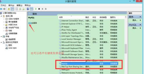 3、在新出現(xiàn)的窗口中,找到并右鍵mysql服務(wù),選擇“啟動(dòng)此程序”。