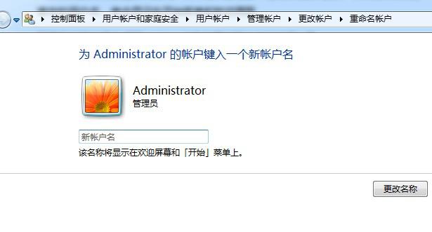 Windows 7,中文名稱視窗7,是由微軟公司(Microsoft)開發的操作系統,內核版本號為Windows NT 6.1。Windows 7可供家庭及商業工作環境:筆記本電腦 、平板電腦 、多媒體中心等使用。Windows 7可供選擇的版本有:入門版(Starter)、家庭普通版(Home Basic)、家庭高級版(Home Premium)、專業版(Professional)、企業版(Enterprise)(非零售)、旗艦版(Ultimate)。 今天Win7系統之家小編給大家詳解win7純凈版系統中更改系統用戶名的步驟。一般情況下,用戶使用的系統安裝好后,都會使用默認的用戶名,但是有些用戶想要追求個性化,喜歡設置自己開始菜單和歡迎畫面的用戶名,如果你也想打造個性登陸界面,請來看看下面的設置步驟方法吧。1、 點擊 “開始” --- “控制面板”,在控制面板中,點擊“ 用戶帳戶和家庭安全”下面的“添加或刪除用戶帳戶”。 ![]() 2、 在彈出的新窗口中選擇想更改用戶名稱的帳號,單擊打開,如下圖中選擇administrator帳號。 ![]() 3、 打開帳號后,點擊左側的“更改帳戶名稱“選項。 ![]() 4、在出現的新畫面中輸入自己喜歡的用戶名,點擊更改名稱即可。 ![]() 這樣windows7系統的用戶名就更改完成了,操作方法很簡單,有興趣的用戶請試試吧。 windows 7 的設計主要圍繞五個重點——針對筆記本電腦的特有設計;基于應用服務的設計;用戶的個性化;視聽娛樂的優化;用戶易用性的新引擎。 跳躍列表,系統故障快速修復等,這些新功能令Windows 7成為最易用的Windows。 |