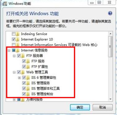 2、在打開(kāi)或關(guān)閉Windows功能中,將Internet信息服務(wù)中的所有組件(含子組件)前面的勾全部選上,點(diǎn)擊“確定”。