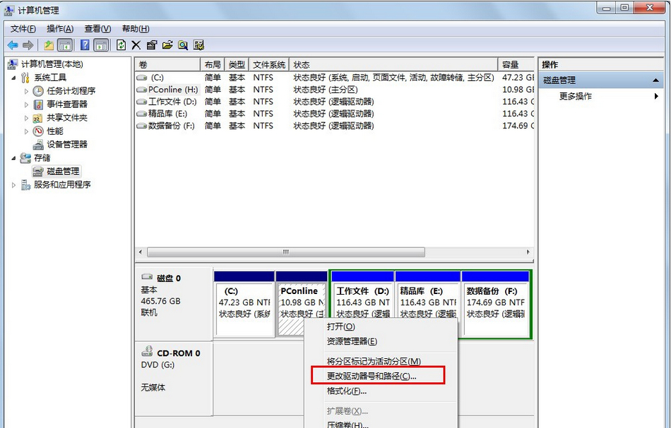 Windows 7,中文名稱視窗7,是由微軟公司(Microsoft)開發的操作系統,內核版本號為Windows NT 6.1。Windows 7可供家庭及商業工作環境:筆記本電腦 、平板電腦 、多媒體中心等使用。Windows 7可供選擇的版本有:入門版(Starter)、家庭普通版(Home Basic)、家庭高級版(Home Premium)、專業版(Professional)、企業版(Enterprise)(非零售)、旗艦版(Ultimate)。 win7系統中更改磁盤分區盤符的方法分享給大家,如果你也想對驅動器號進行更改的話,請來看看下面Win7系統之家給大家介紹的操作步驟吧。1. 在“計算機”圖標上右鍵選擇“管理”,出現“計算機管理”界面,點擊右邊欄中的“磁盤管理”,出現磁盤各分區狀況界面。 2.選中需要改變盤符的磁盤分區,右擊選擇“更改驅動器號和路徑”。 ![]() 3.選擇右鍵菜單中的“更改驅動器號和路徑”, 再點擊菜單中的“更改”選項。 4.點擊“更改”選項后,彈出“更改驅動器號和路徑”,輸入驅動器號和路徑即可。 ![]() windows 7 的設計主要圍繞五個重點——針對筆記本電腦的特有設計;基于應用服務的設計;用戶的個性化;視聽娛樂的優化;用戶易用性的新引擎。 跳躍列表,系統故障快速修復等,這些新功能令Windows 7成為最易用的Windows。 |