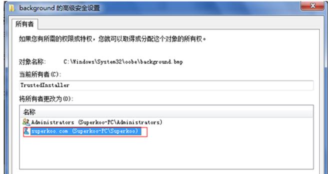 2、選擇當(dāng)前用戶為所有者,然后按確定,這樣文件的所有者就變成了當(dāng)前用戶了,需要重新打開文件屬性就生效了。