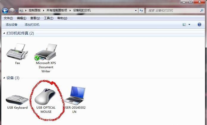 2.在設(shè)備和打印機(jī)中用鼠標(biāo)右鍵單擊“鼠標(biāo)”選項(xiàng)里的“設(shè)置鼠標(biāo)” 如圖示: